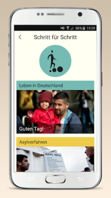 The Arrival app in overview - Learn German. A basic language course from the Goethe Institute for independent learning. With many exercises for listening, writing and reading. - Information on the asylum proceedings. Step by step from registration to the hearing. Compiled by the Federal Office for Migration and Refugees. - Ways to find a vocational training position and work. Compiled by the Federal Employment Agency. - Living in Germany. From practical tips to insights into values and rules for living together in Germany. With advice from people who have been living in Germany for some time. - A stream of daily offers for learning and reading. - Intuitive operation