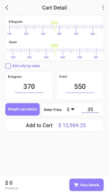 * Retail Weighing price calculation in Grams or Kilograms.