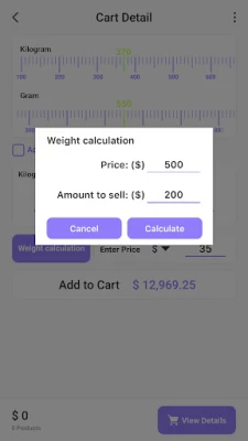 * Calculate the weight by entering the price of the product and the amount to sell