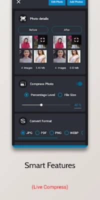 - {New} Batch converter feature - convert multiple images/photos to desire format with powerful compression which also help to compress photos size