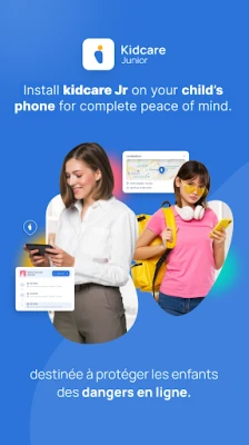 KidCare Jr is the child-side parental control app, working alongside the parent app to manage usage, set screen time limits, and block inappropriate content. It provides a secure digital space with app control, time management, and location tracking.