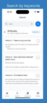 On the journey of knowing God, the Apostles' Creed, the Nicene Creed, the Athanasian Creed, the Belgic Confession (1561), the Heidelberg Catechism (1563), and the Canons of Dort (1619) play pivotal roles. Our app provides the complete texts of these creeds and confessions, derived from and always subject to the teaching of the Bible.
